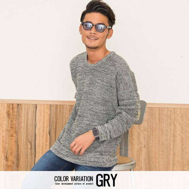 ラーベン編みによる立体感を楽しめるクルーネックニット。
