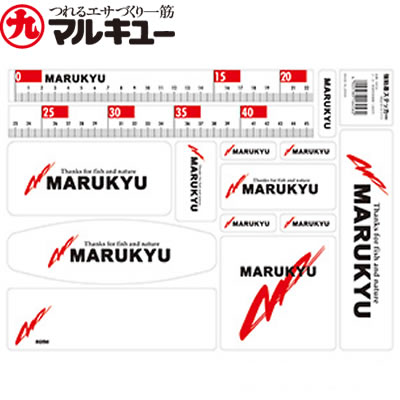 ●MARUKYUブランドロゴをはじめメジャーや名前を記入できるネームプレートがデザインされたステッカーです。