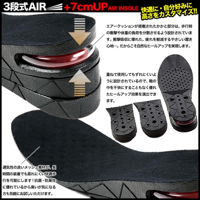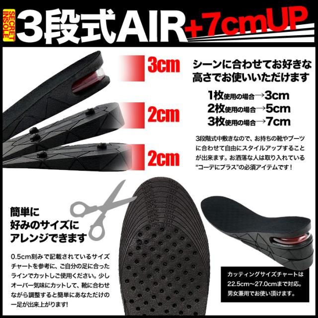 シークレットインソール 7cmアップ 3段階調節可能 サイズ調整可能 insole7cm