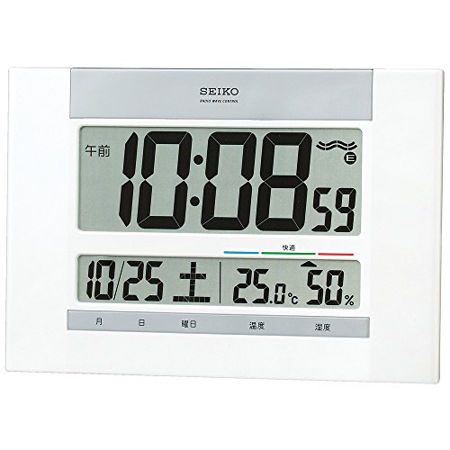 セイコー クロック 掛け時計 置き時計 兼用 電波 デジタル カレンダー 快適度 温度 湿度 表示 薄型 白 パール SQ429W SEIKO