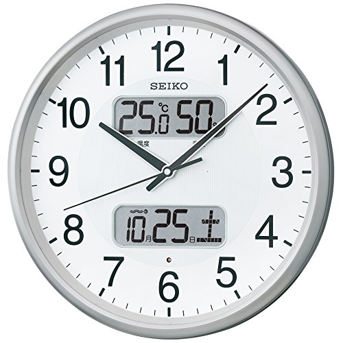 SEIKO CLOCK(セイコークロック) 温湿度計カレンダー表示つき電波アナログ掛時計(銀) KX383S