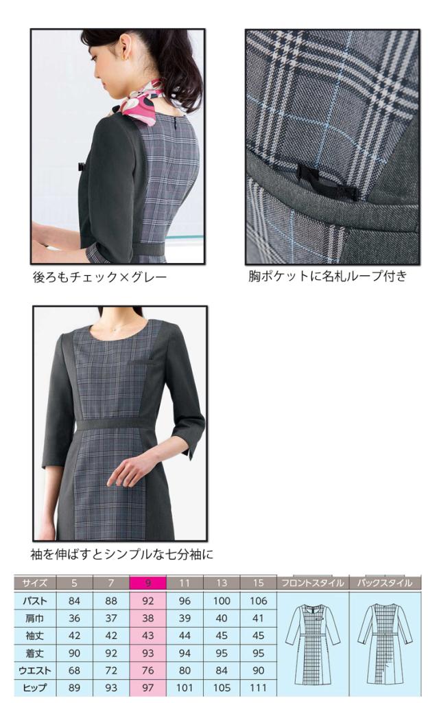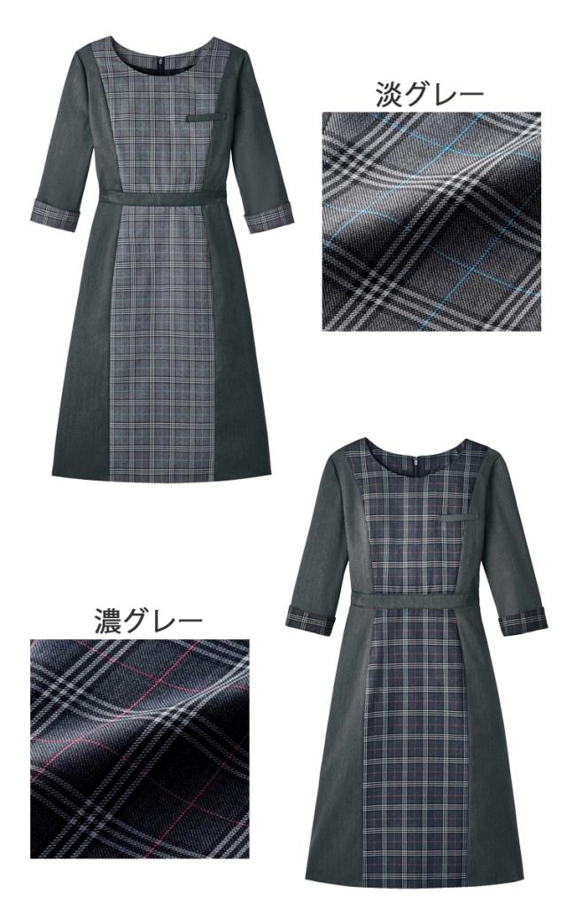 おもてなし制服 受付 ハネクトーン ワンピース(バイカラー) 7722 ソフトグレナカートチェック