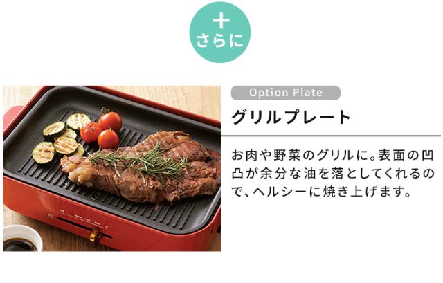 四角いホーロー鍋のようなレトロ感あふれるデザインが魅力的なBRUNOの「コンパクトホットプレート」。コンパクトながらこの一台で焼く・煮る・蒸すの調理をすることが出来ます。ホットプレート本体付属の平たいプレートとたこ焼きプレート、更に焼肉や野菜のグリルに最適なオプションパーツのグリルプレートもセットにしました◎プレートを使い分ければ更にレシピの幅が広がりますよ♪