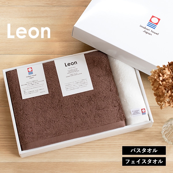 ギフト) 今治タオル バスタオル1枚+フェイスタオル1枚 レオン セット タオル ギフト 送料無料 ※紙袋付き お歳暮 贈り物 プレゼント ホテルタイプ ホテル仕様 シンプル デイリー 日本製