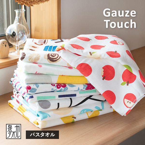 ガーゼタオル バスタオル 1枚 ガーゼタッチ 日本製 泉州タオル タオル 送料無料 (ポスト投函) 薄手 速乾 可愛い おしゃれ カラフル フルーツ柄 北欧 優しい やわらか 敏感肌 吸水バスグッズ