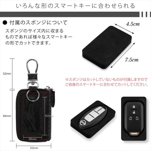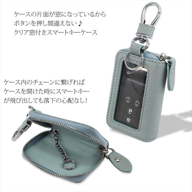 ・愛車や自宅のスマートキーを入れたままリモコン操作が可能な、便利な窓付きの多機能キーケース。