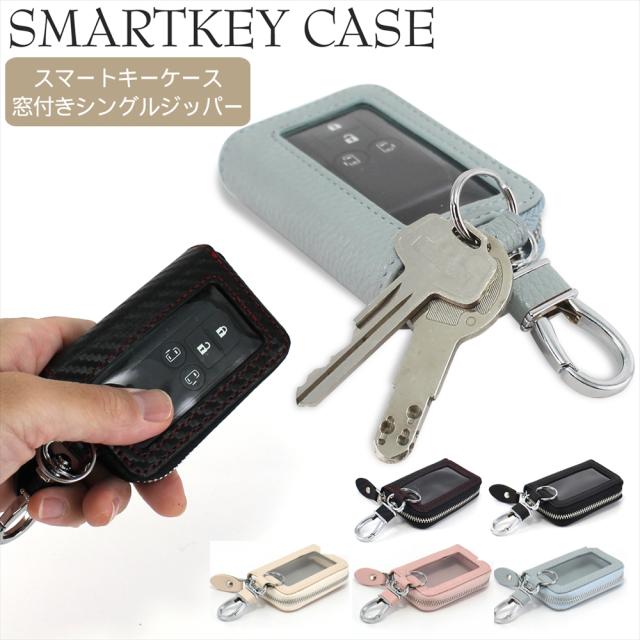 スマートキーケース クリア窓付き ケース シングルジッパー Type-B ファスナー キーケース スマートキー スマートドア キーリング 窓付き スマートキーカバー トヨタ ホンダ 日産 スズキ ダイハツ マツダ スバル 三菱 ボタンが見える カバー 収納 車キーケース