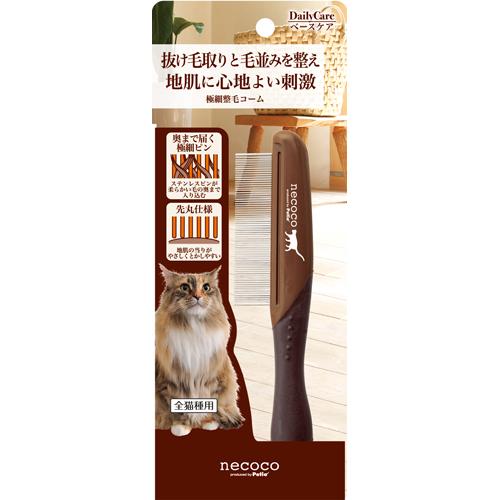 ペティオ necoco ねここ 極細整毛コーム 国産 日本製 猫用くし 手入れ用品 コーム 猫 ネコ 短毛 長毛 抜け毛取りと毛並みを整え、地肌に心地よい刺激 Petio