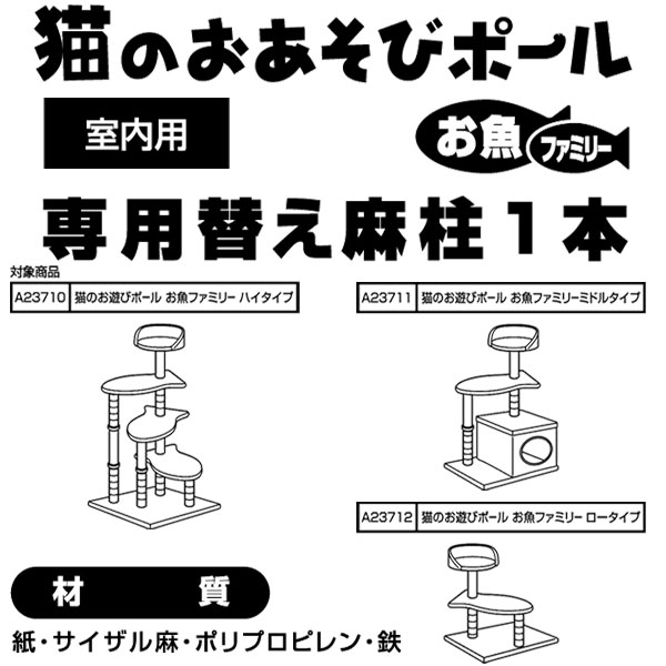 アドメイト 猫のおあそびポール お魚ファミリー 専用替え麻柱1本 爪とぎ キャットタワー おもちゃ 一人遊び キャットタワー ねこ 猫 ネコ 短毛 長毛 〜10kg 変形自由自在のニュータイプキャットタワー 麻を使った取替え柱 Add.Mate