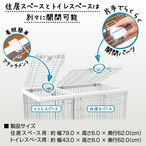 ●住居スペースとトイレスペースは別々に開閉可能●着脱簡単アタッチメント●片手でらくらく開閉パーツ
