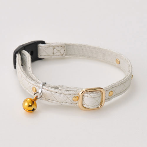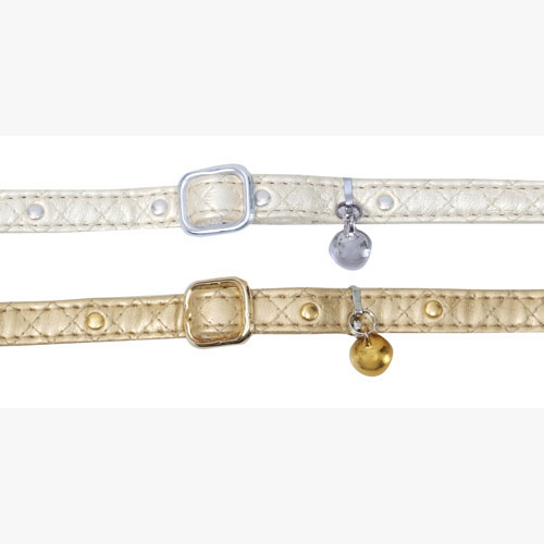ペティオ CAT COLLAR キャットカラー 猫専用首輪 ゴージャスカラー シルバー 平首輪 合皮 猫 ネコ 短毛 長毛 ゴールドとシルバーの生地にキルティング風ステッチを施した上品なデザイン Petio