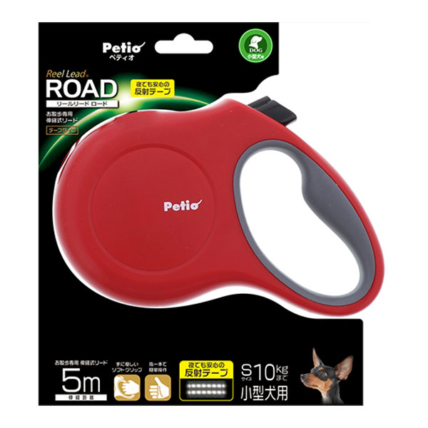 ペティオ リールリード ロード S レッド 赤 小型犬用引き紐 伸縮リード 短毛 長毛 〜10kg お散歩専用伸縮式リールリード Petio