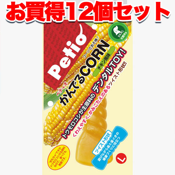 1個オトクな12個セット 送料無料|ペティオ かんでるコーン ツイスト チキン風味 L 国産 日本製 犬用おもちゃ 成型 犬 1歳〜 大型犬 短毛 長毛 トウモロコシが主原料のデンタルTOY くわえやすく、かみごたえのあるツイスト形状 Petio