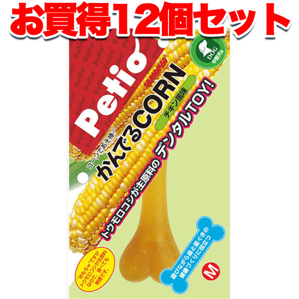 1個オトクな12個セット 送料無料|ペティオ かんでるコーン チキン風味 M 中型犬用 国産 日本製 犬用おもちゃ 成型 犬 1歳〜 中型犬 短毛 長毛 トウモロコシが主原料のデンタルTOY Petio