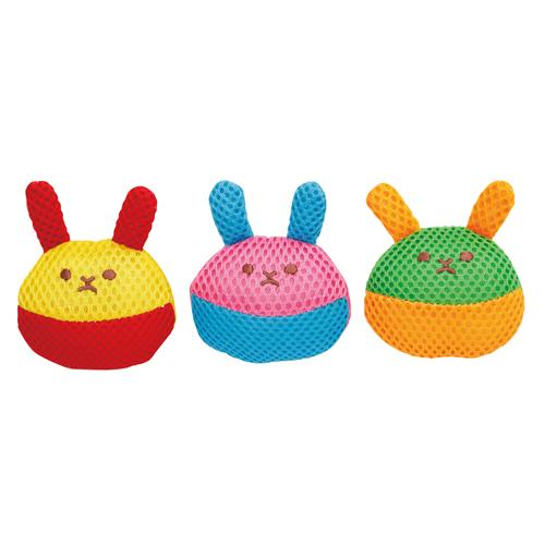 遊びながらハミガキ習慣!デンタル生地を使用したカラフルなうさぎのぬいぐるみアソートセット。お口の小さなワンちゃんにもくわえやすいサイズ。ワンちゃん大好きな笛入。