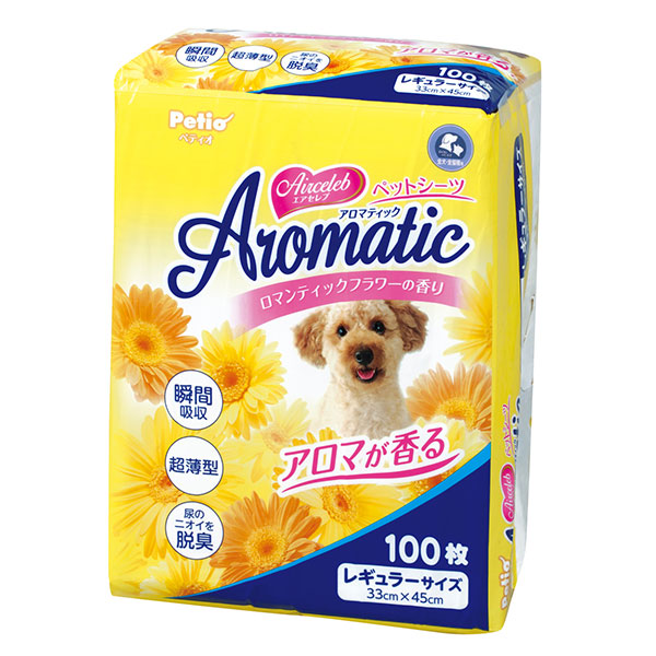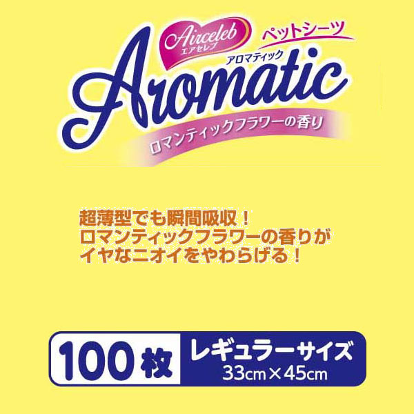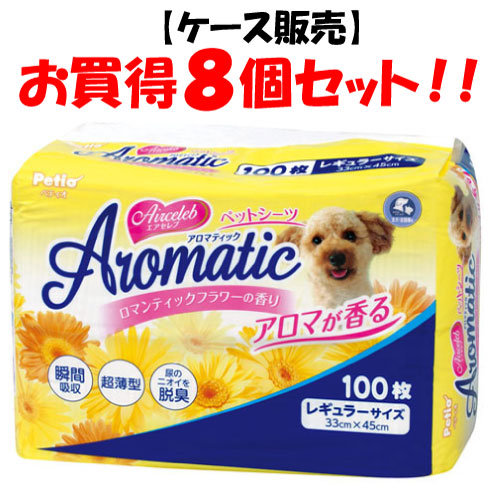 8個セット 送料無料|ペティオ エアセレブ アロマティック ペットシーツ レギュラー 100枚ペティオ 綿状パルプと高分子吸収体 ポリマー が尿をすばやく吸収し尿のイヤなニイを閉じ込める 白色シートなので尿の色をチェック可 香料付 犬用 猫 ネコ Petio