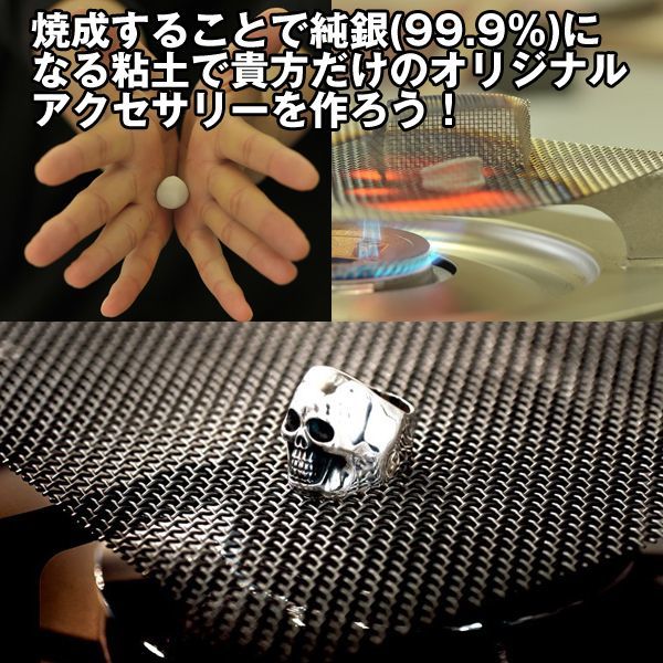 自由にカタチ作れ、焼くと純銀に変わる。家庭でアクセサリー作りを手軽に楽しめる画期的素材です。
