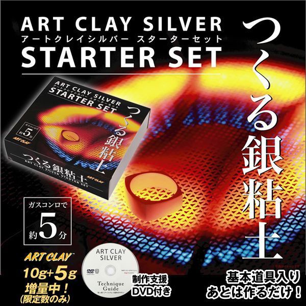 アートクレイシルバースターターセット (純粘土 10g 純銀99.9% 焼成 手作り アクセサリー コンロで5分 DVD レシピ)