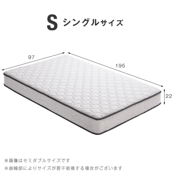 | 【ベッド】 外寸:幅98.5×奥行き209×高さ63.5cm すのこ厚:1.2cm コードの長さ:190cm 【マットレス】 幅97x奥行195x厚み21cm(シングルサイズ) コイル数:465個 ※マットレスは柔らかい素材で作られてますので、圧縮状態からすぐに 復元した状態、また測り方によっては、多少サイズに誤差が生じる場合がございます。予めご了承下さい。 |
