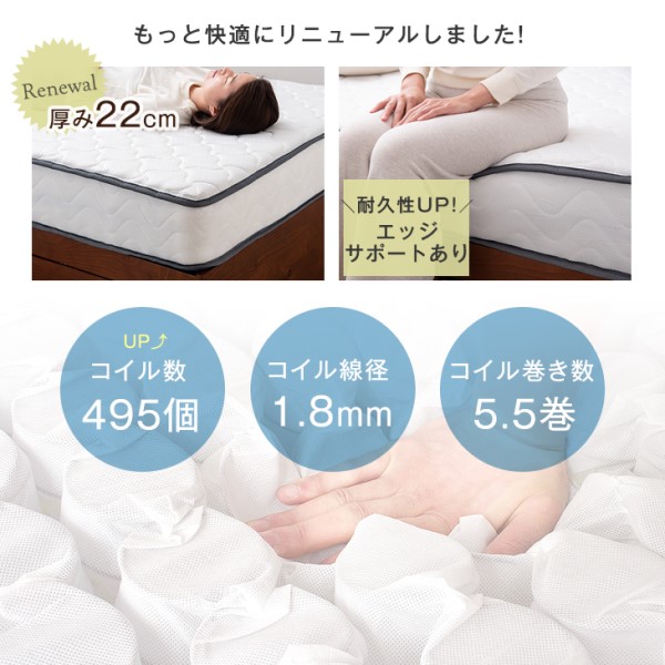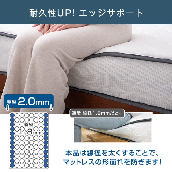 | 【ベッド】 宮・フレーム・脚:無垢材(パイン) すのこ:LVB 塗装:ラッカー塗装 【マットレス】 表地:ポリエステル100%、裏面:不織布 内部:ポケットコイル、ウレタンフォーム、シリコンフィル、不織 |