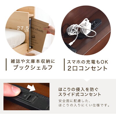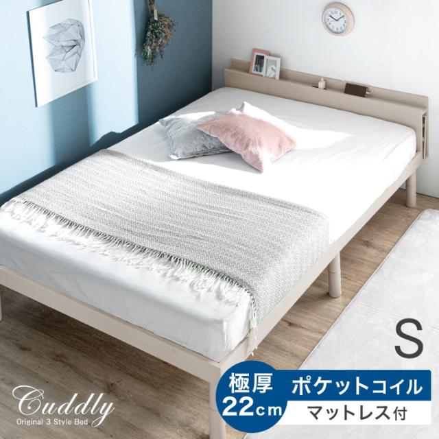 【正午〜P5%還元】 ベッド マットレス付き シングル ポケットコイルマットレス 宮付き すのこベッド スマホスタンド すのこ コンセント シングルベッド