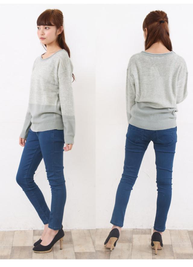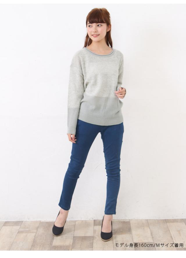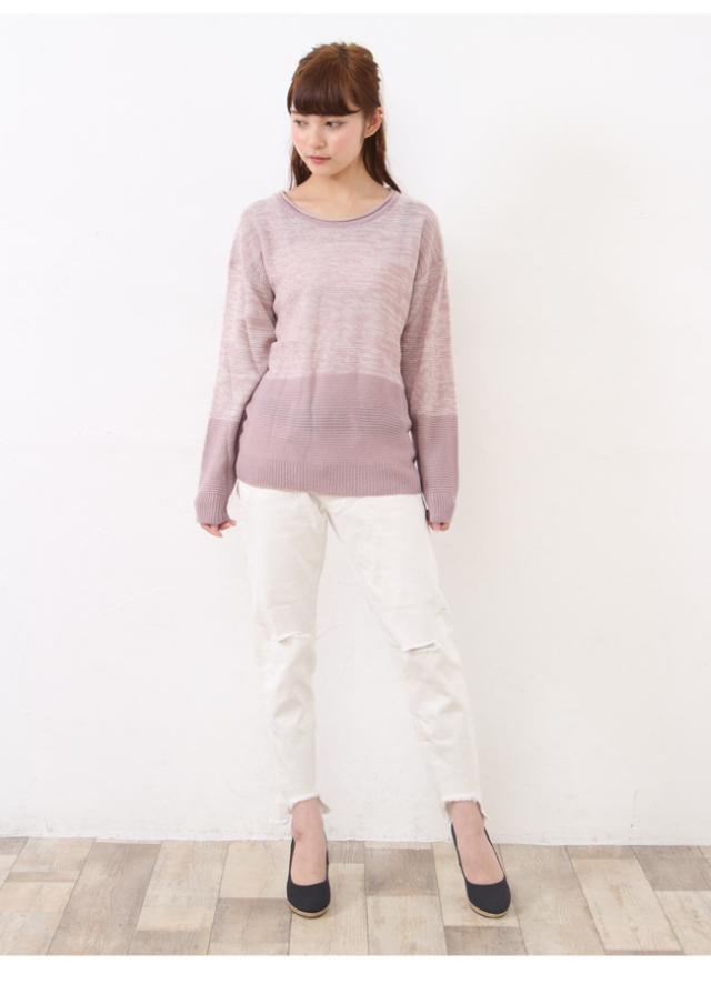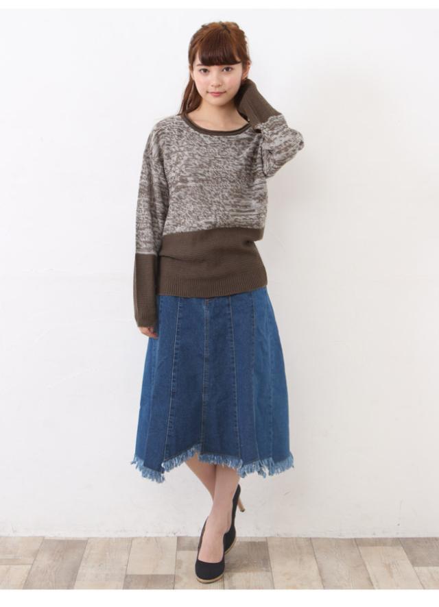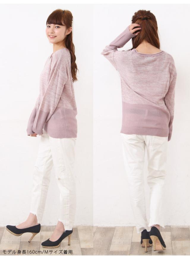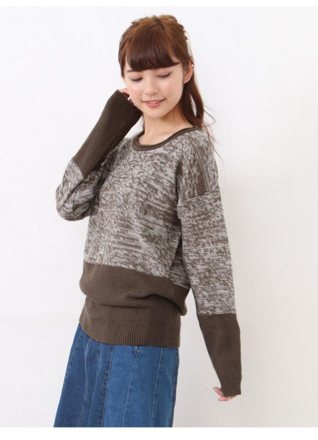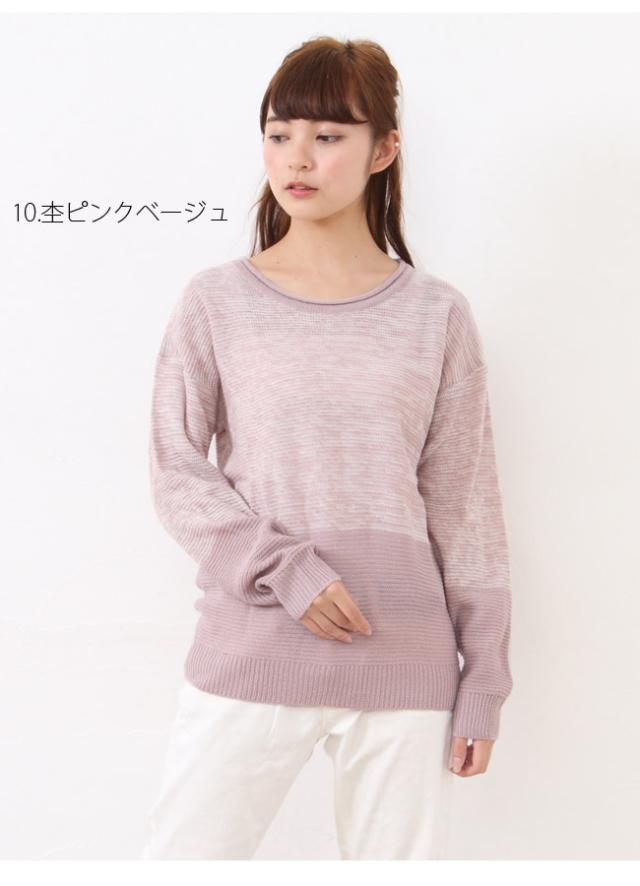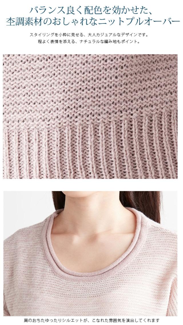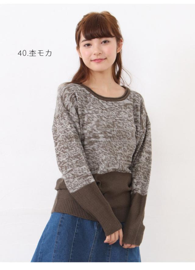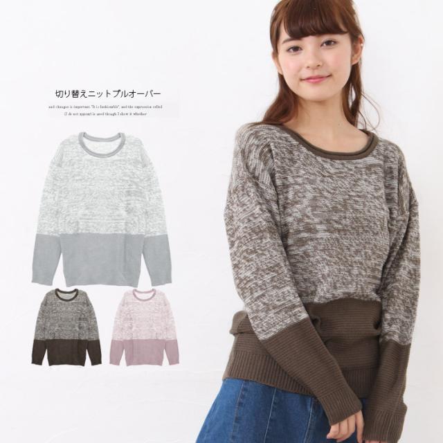 配色ニットプルオーバー ニット プルオーバー ゆったり 長袖【メール便発送】
