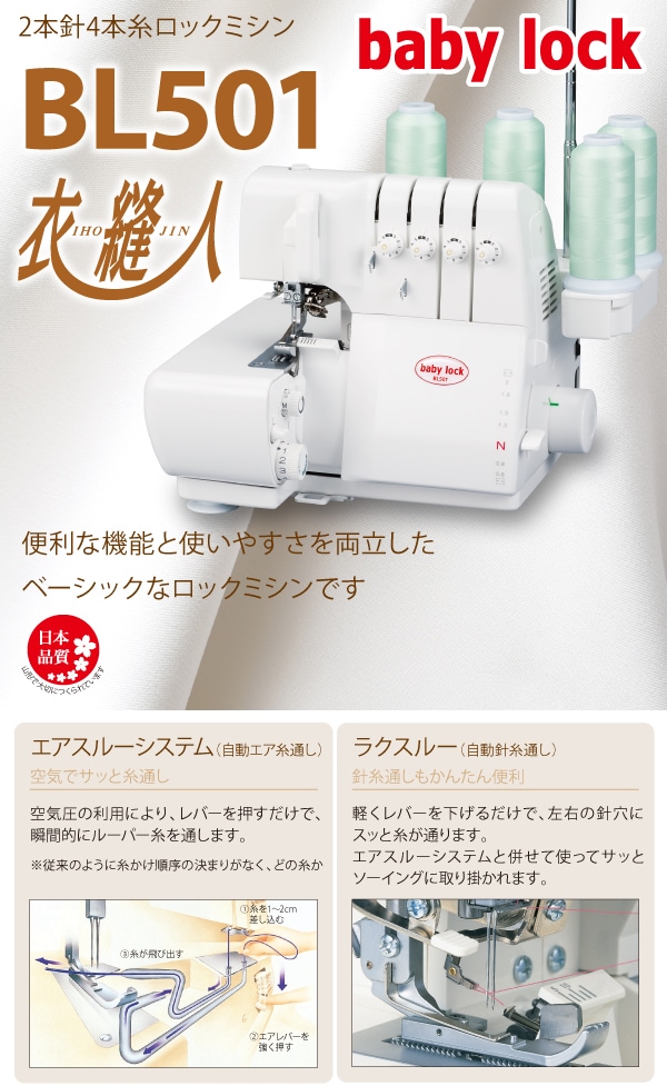 ベビーロック ロックミシン BL501 BL-501 本体 衣縫人シリーズ 【送料無料】 babylock エアスルーで糸通しカンタン! BA052 みしん ロックミシン