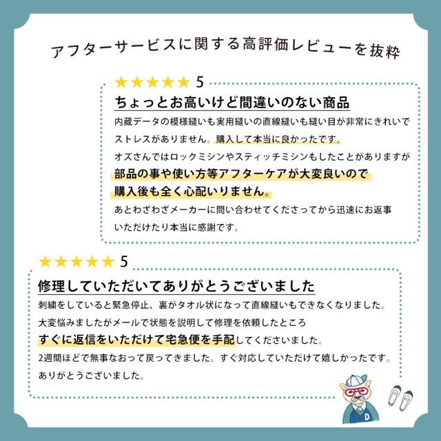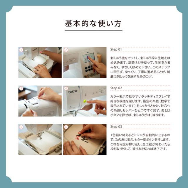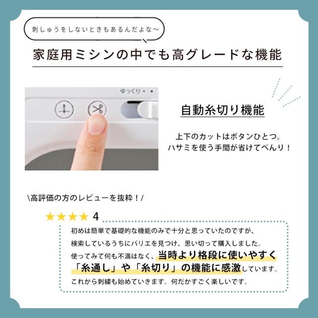 - 刺繍のバリエーションも多く、お洒落なミシンを有難うございました!沢山刺繍して楽しみます!