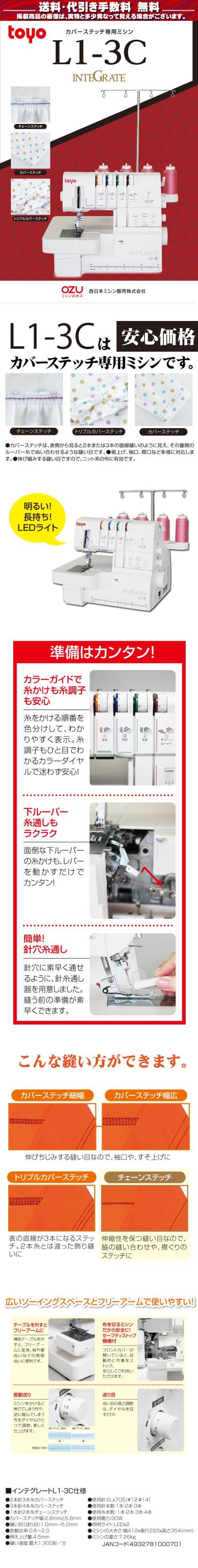 カバーステッチミシン インテグレート L1-3C L13C INTEGRATE 本体 送料無料 サブテンション機能 差動送り付 IN003 みしん