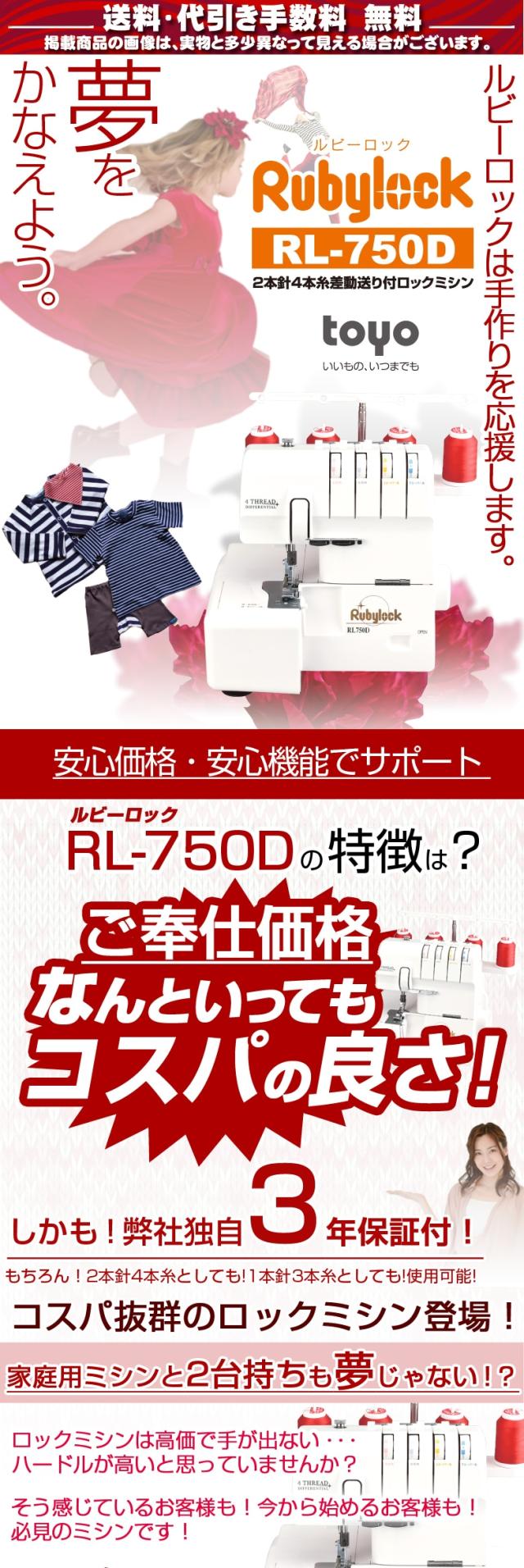 TOYO(トーヨー) 2本針4本糸ロックミシン RL-750D RL750D 送料無料】差動機能付き