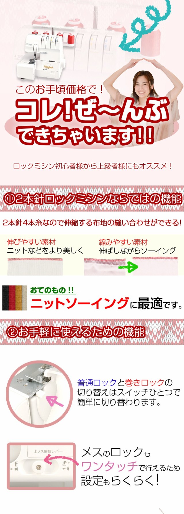 - 以前母が使っていたロックミシンを使い方が分からず捨ててしまい 最近着物のリサイクルを始めてロックミシンが欲しくなりこちらのミシンをレビューを参考にして買いました。 初心者の私でも使えるので買って良かっ...