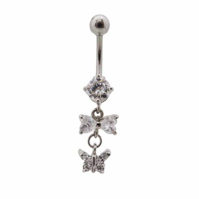 バナナバーベルリボン蝶々チャーム チタンへそピアス 【14G】