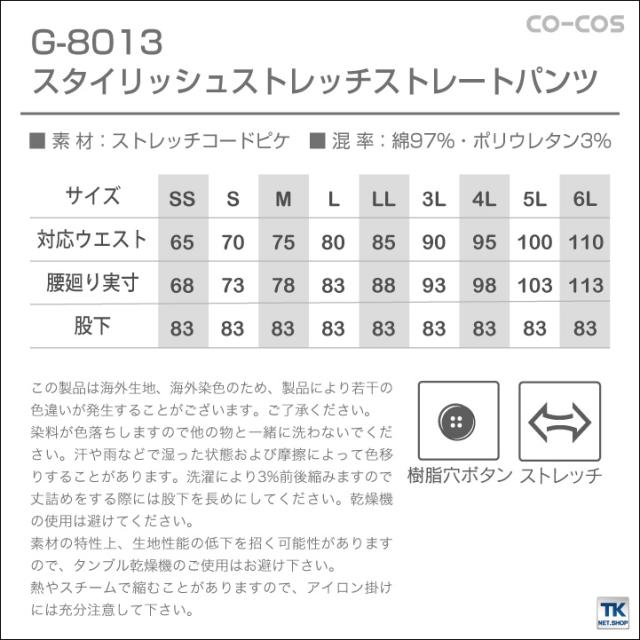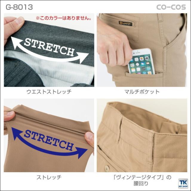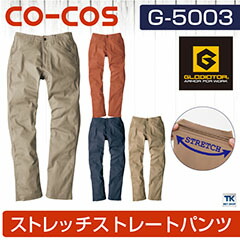 ストレートパンツ ストレッチ スタイリッシュ 作業ズボン 作業着 作業服 ワークウェア パンツ ズボン スラックス メンズ 定番 無地 シンプル 丈夫 伸縮 オールシーズン CO-COS コーコス 年間 春夏 秋冬 cc-g8013