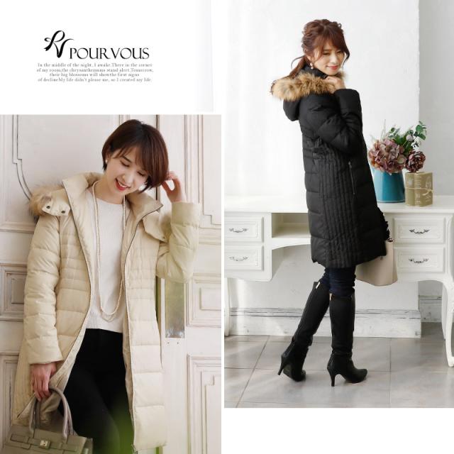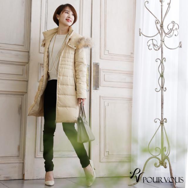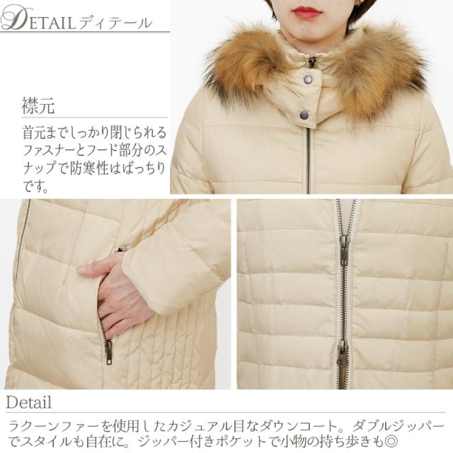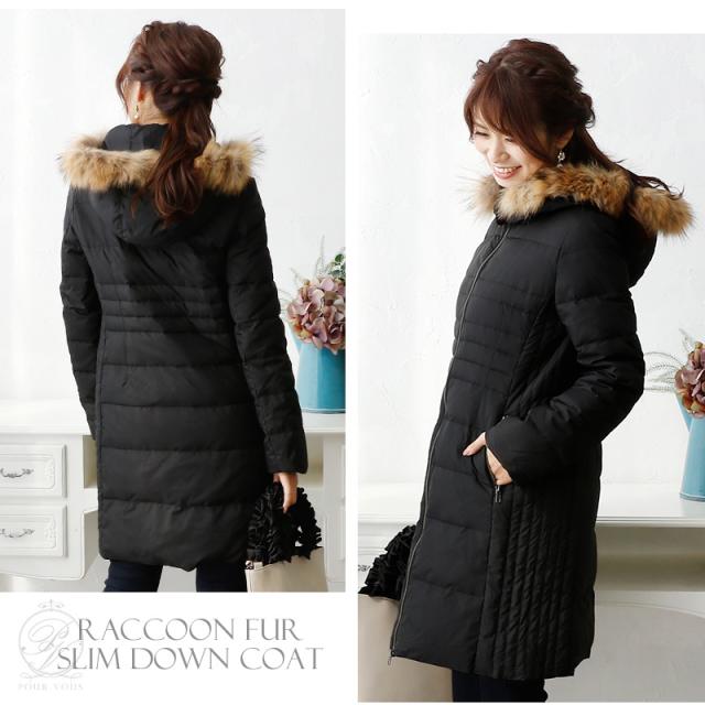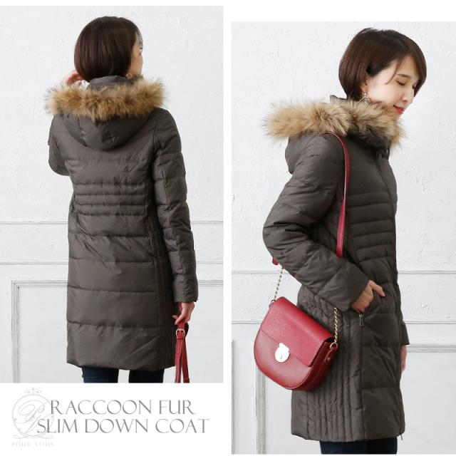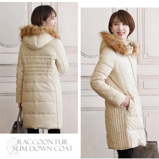 ラクーンファースリムダウンコート【2914】20代・30代・40代・50代七分・刺繍・膝丈・ラクーン・ロング・ショート・コート・ファー・ダブルジッパー・体型カバー・シンプル・スリム・ジャケット・ダウン・ブルゾン・ダウンベスト・ダウンジャケット・ノーカラー・チェスター3Lや4L・・即日発送・送料無料結婚式・婚活・披露宴・顔合わせ・二次会・同窓会・お呼ばれ・食事会・謝恩会・親族・七五三・お宮参り・冠婚葬祭・弔事・女子会・デート・入学式・卒業式・入園式・卒園式・ママ・マタニティー・セレモニー・セレブ・パーティー