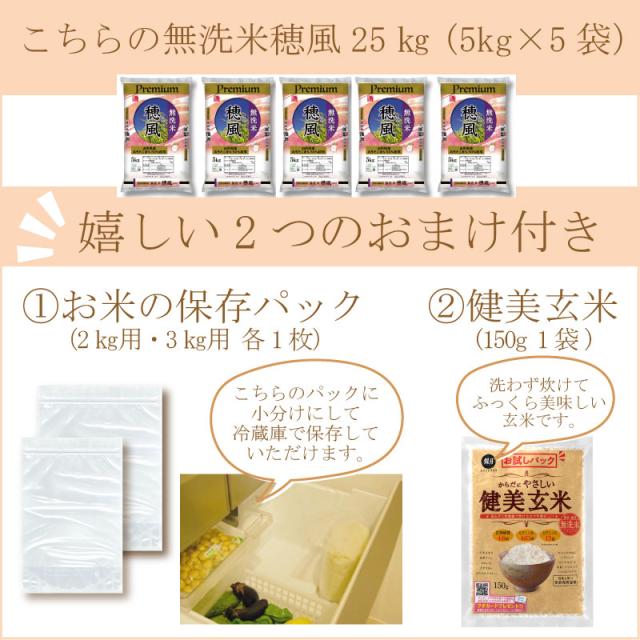 令和7年産配合 無洗米 穂風 ほのか25kg (5kg×5) 国内産100%使用 お米マイスターブレンド 送料無料 /北海道沖縄へは別途送料760円 /玄米150g+保存パックおまけ
