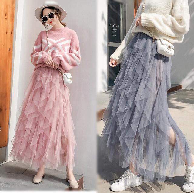 プリーツスカート チュールスカート チュール フレア ロング丈 ミディアム アシンメトリー ミモレ丈 フレアスカー チュチュスカート