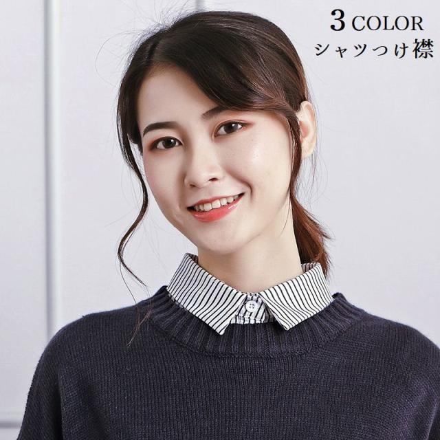 付け襟 付け衿 シャツカラー ストライプ柄 レディース 角襟 重ね着風 着ぶくれしない シャツ風 シャツ カラー レイヤードスタ