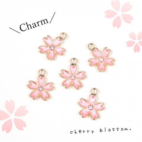 【チャーム】5個 桜《きれいめゴールド×ピンク》[さくら,花,植物,ソメイヨシノ,春,エポ付き,カラー]