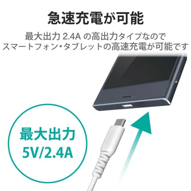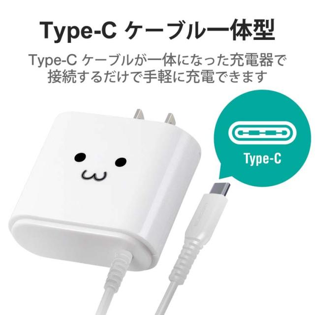 【エレコム スマホ充電器 タブレット充電器 AC 1.5m タイプC ケーブル一体型 1年保証の商品詳細】