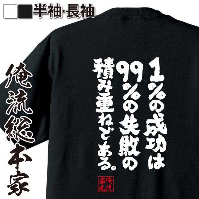 俺流 魂心Tシャツ【1%の成功は99%の失敗の積み重ねである】漢字 文字 メッセージtシャツおもしろ雑貨