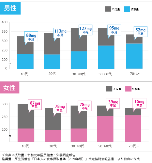 ■ 男女どの年代でも不足しているマグネシウム