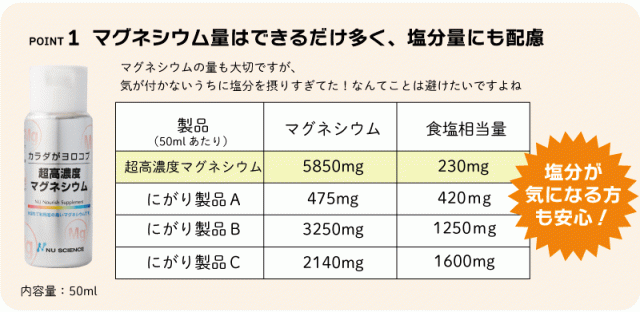 1本(内容量50ml)中、マグネシウム5850mg含有。
