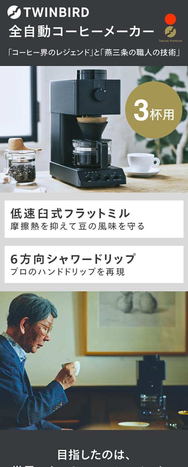 ツインバード コーヒーメーカー 全自動 TWINBIRD CM-D457B ブラック [全自動コーヒーメーカー (3杯分)]
