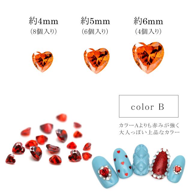 ラインストーン ジルコニア製 グロッシーストーン(Glossy stone) ハート カラーA/カラーB 4mm/5mm/6mm