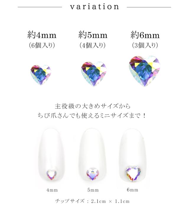 ラインストーン ジルコニア製 グロッシーストーン(Glossy stone) ハート オーロラカラー 4mm/5mm/6mm