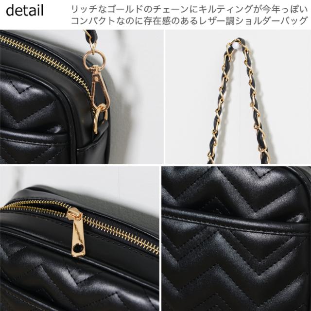 モデル身長:160cmリッチなゴールドのチェーンにキルティングが今年っぽいコンパクトなのに存在感のあるレザー調ショルダーバッグいつものコーデに取り入れるだけで一気におしゃれ度の増すアイテム!!