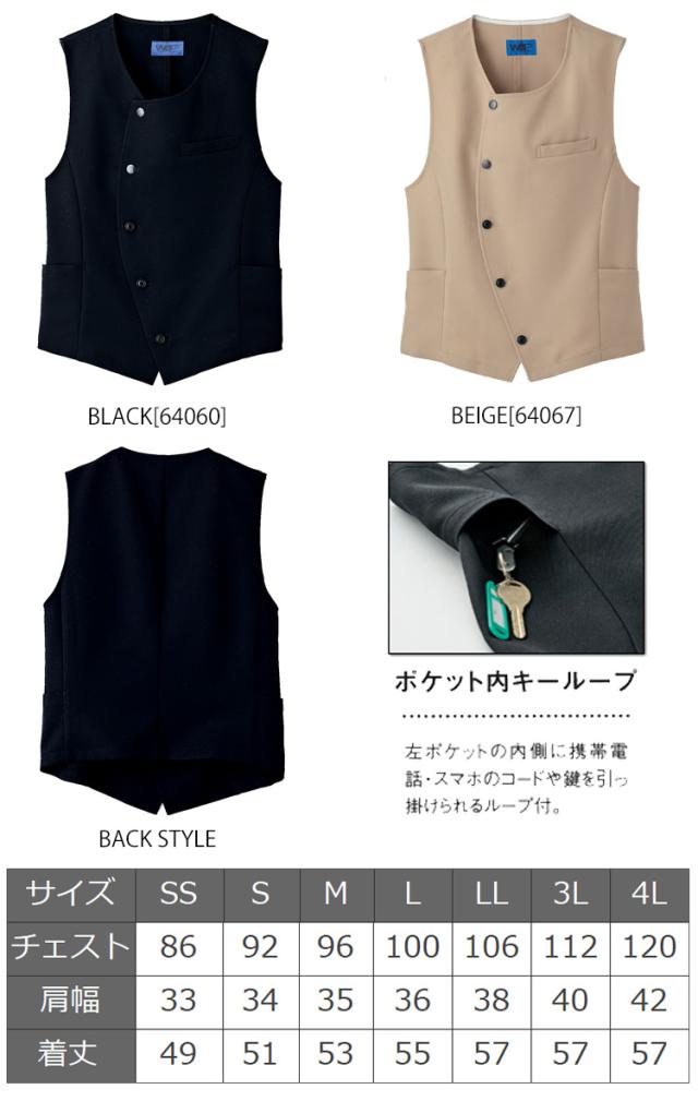 制服 ユニフォーム 飲食 カフェ WSP セロリー ベスト ユニセックス 64060 64067