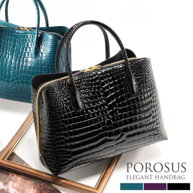 スモール クロコダイル ハンドバッグ レディース シャイニング 加工 センター取り 2WAY ポロサス ゴールド 金具(06001264r)