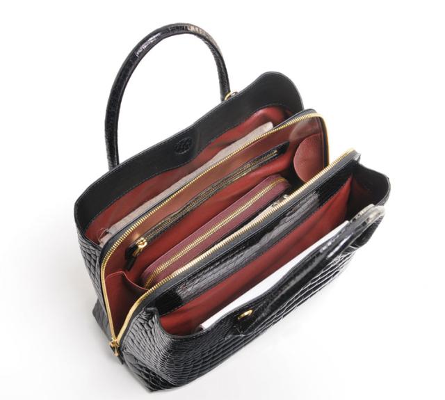 美しい輝きのスモールクロコダイルで仕立てた2WAYハンドバッグ。