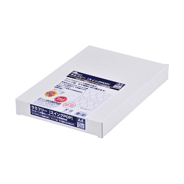 サイズ:A4 寸法:210×297mm 紙質:光沢耐水紙 坪量:約230g/m2 厚み:約0.21mm 白色度:約93%(ISO方式) その他仕様:●タイプ:スイングPOP ●面付け:6面 ●対応機種:カラーコピー機、カラーレーザープリンタ 備考:※お使いの機種によっては対応しない場合がございます。 ※厚紙モード・手差し給紙でお使いください。 ※排紙トレイの紙は、こまめに取り除くことをおすすめします。